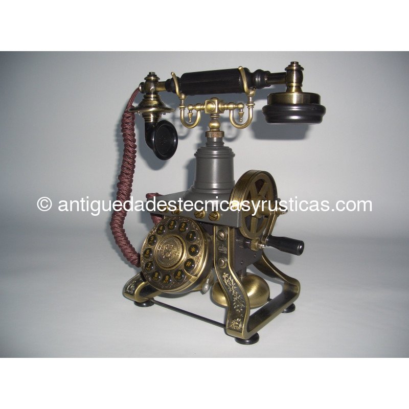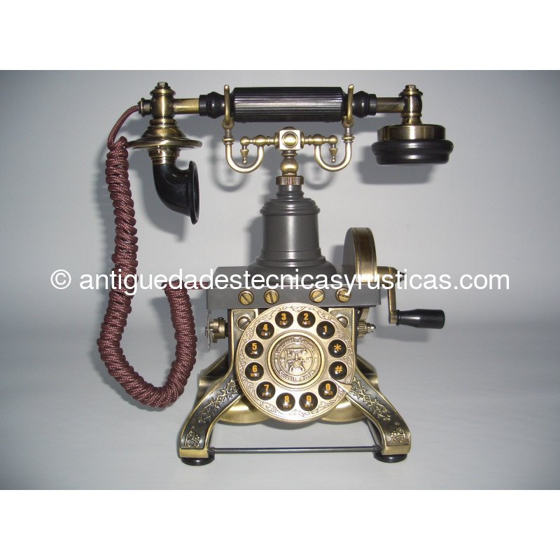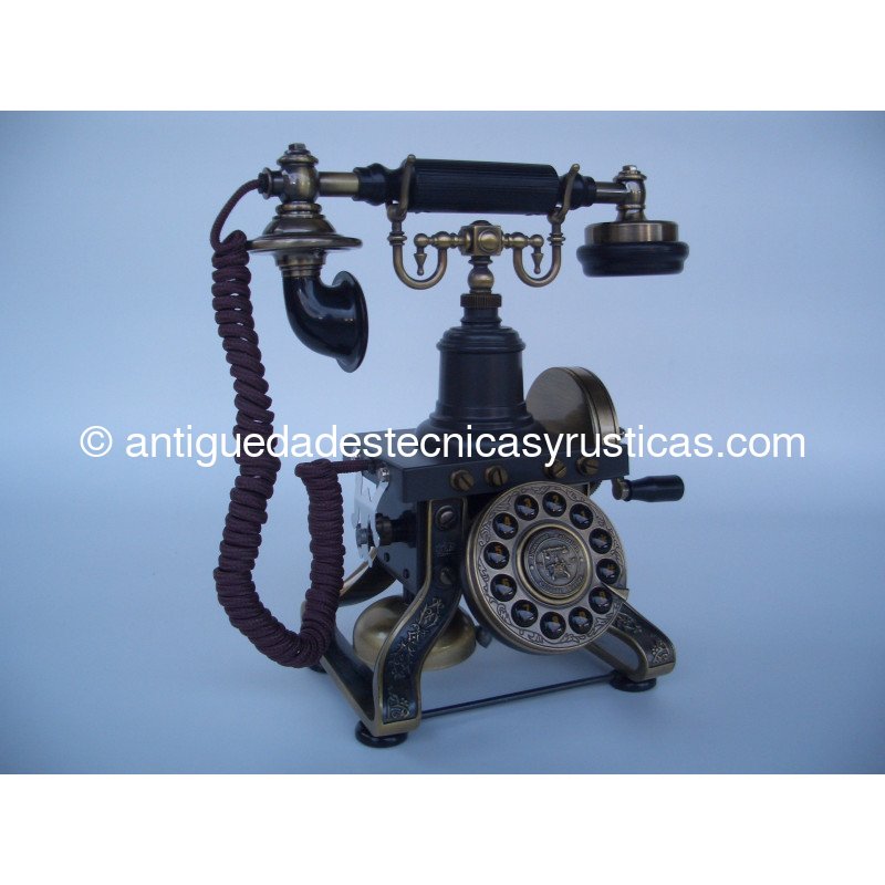 Teléfono Esqueleto inspirado en el modelo que fabricó L.M. Ericsson en el año 1.895, es una réplica de fabricación actual, los mecanismos son modernos y es totalmente funcional con todas las compañías telefónicas analógicas, digitales y fibra óptica, dispone de botones de marcación numérica, rellamada y los símbolos * y #.